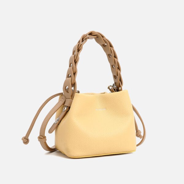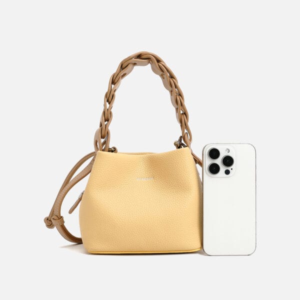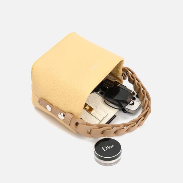 - Braided Handle Design: The yellow leather exterior with a distinctive braided handle offers a trendy and ergonomic grip, making it a standout tote handbag.