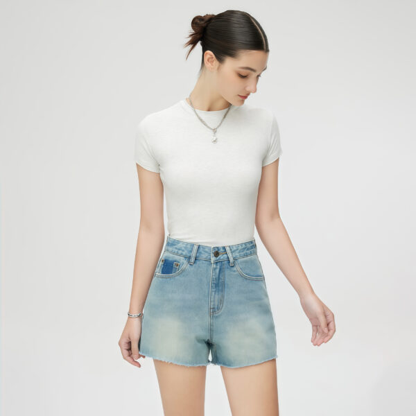 These women’s high-rise denim shorts are a standout for spring fashion trends 2025, merging denim durability with a breezy, stylish design. The stretch denim build ensures ease of movement and ventilation, perfect for sunny seasons. Pair them with a tee or blouse for a fresh, laid-back vibe. Excellent for relaxed women’s denim shorts, fashionable light blue shorts, or your adaptable warm-weather outfits.