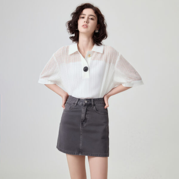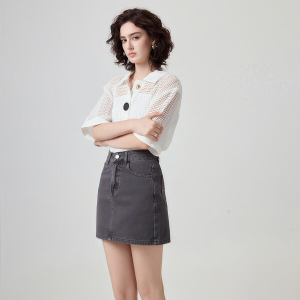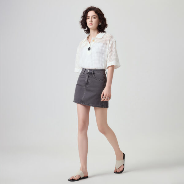 This women’s high-waisted denim skirt is perfect for summer fashion trends 2025, combining the rugged charm of denim with a comfortable, stylish cut. The stretch denim construction ensures mobility and airflow, ideal for warm weather. Pair it with a blouse or tee for a chic, effortless outfit. Great for casual women’s denim skirts, trendy gray skirts, or your versatile summer collection.