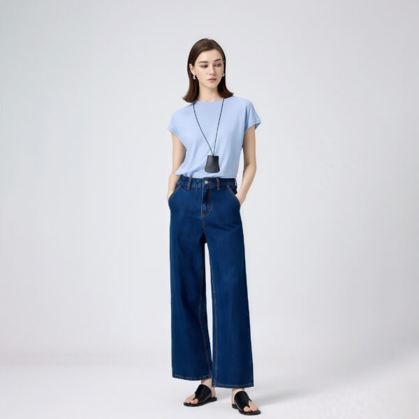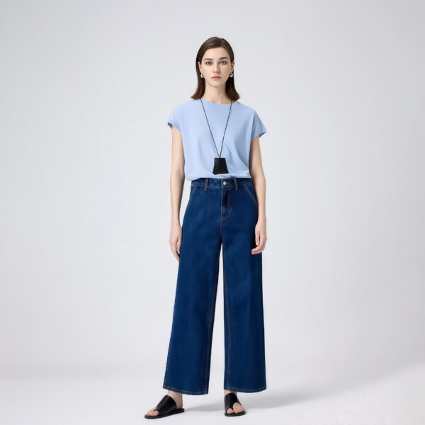 • Material: Constructed from durable stretch denim material, delivering a soft, airy feel with added flexibility. Perfect for comfortable wide-leg jeans.