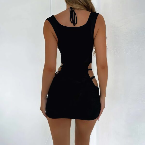 Ideal for those seeking a “bold cut-out mini dress” or a “sexy black dress for women,” this trendy club dress blends style and versatility seamlessly.