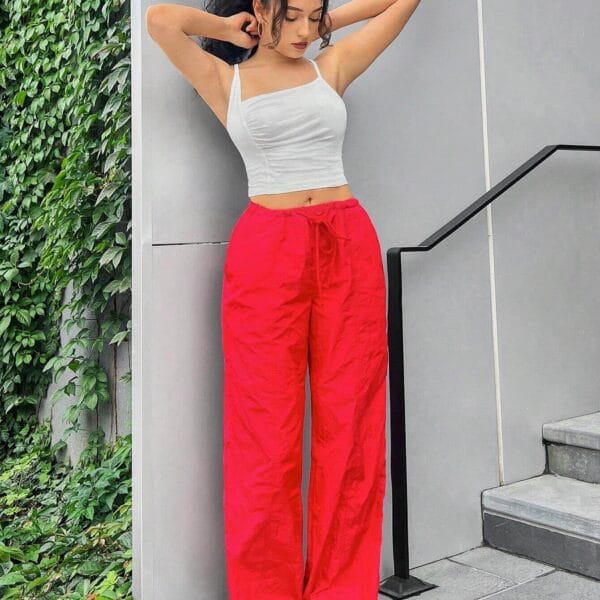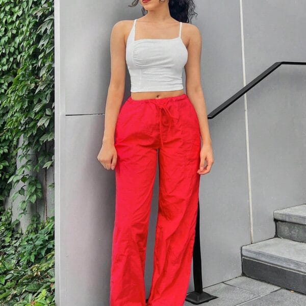 This white spaghetti strap crop top is perfect for casual days, beach trips, or a fashionable summer look. Pair it with red pants for a ruched crop top outfit or style it with a skirt for a trendy white top ensemble. A must-have for women seeking a stylish spaghetti strap top that blends comfort and fashion.