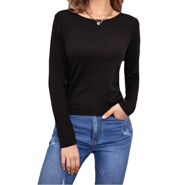Tämä tyylikäs naisten pitkähihainen toppi on pakko saada niille, jotka etsivät trendikäs rento asu. . avoimen selkänojan ominaisuus tuo ainutlaatuisen kierteen, kun taas joustava kangas takaa mukavuuden koko päiväksi. Ihanteellinen päivästä yöhön siirtymisiin, tämä musta naisten pusero on helppo koristella ja ylläpitää sen avulla. helppohoitoinen materiaali.