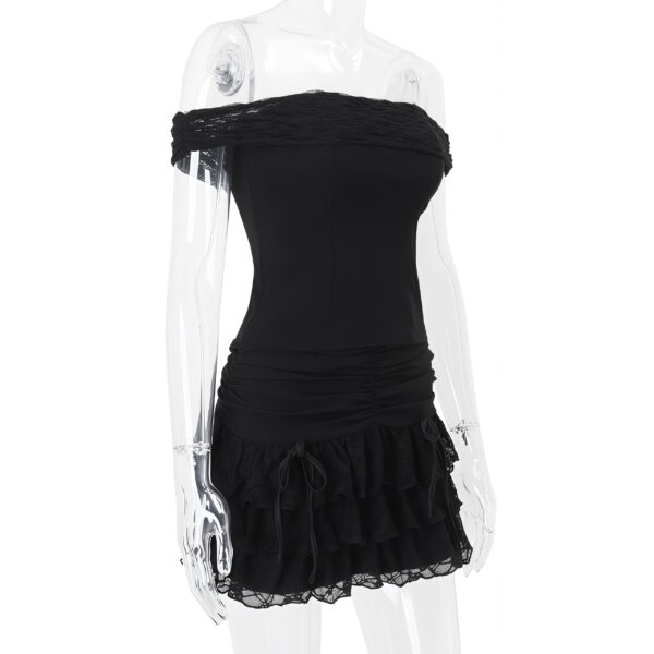 Pourquoi choisir cette mini-robe noire à volants et épaules décalées ?