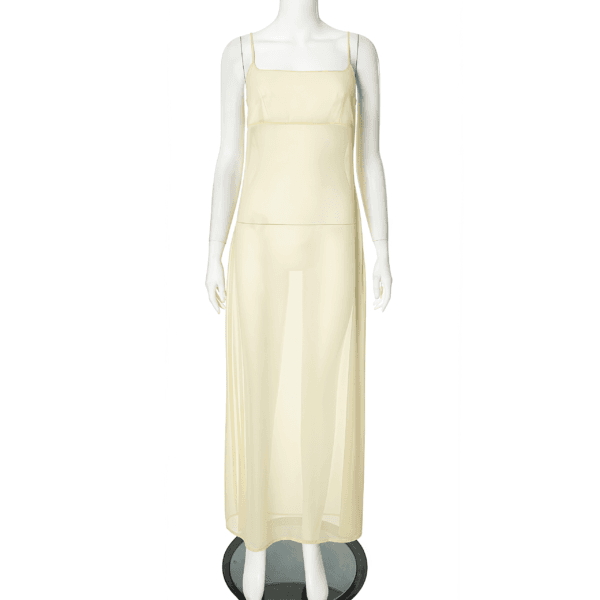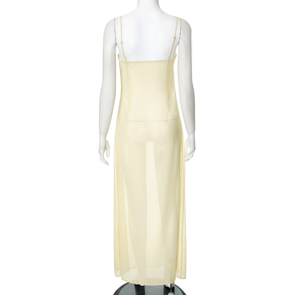 - Design: The halter neckline with a tie-back adds a bohemian flair, while the long skirt with ruffle details creates a graceful, flowing silhouette. The fitted bodice and flared hem enhance its elegant, free-spirited appeal.