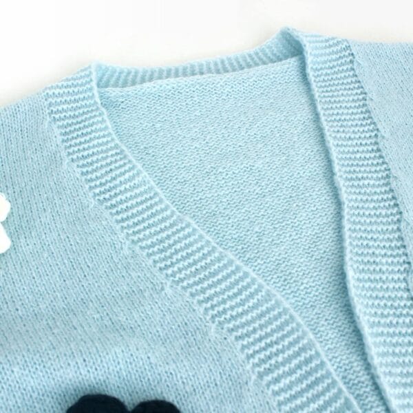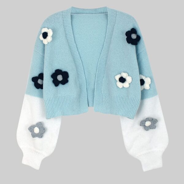 Compre agora para adicionar este casaco de malha floral azul claro para o seu guarda-roupa e desfrute de uma mistura perfeita de estilo e calor!