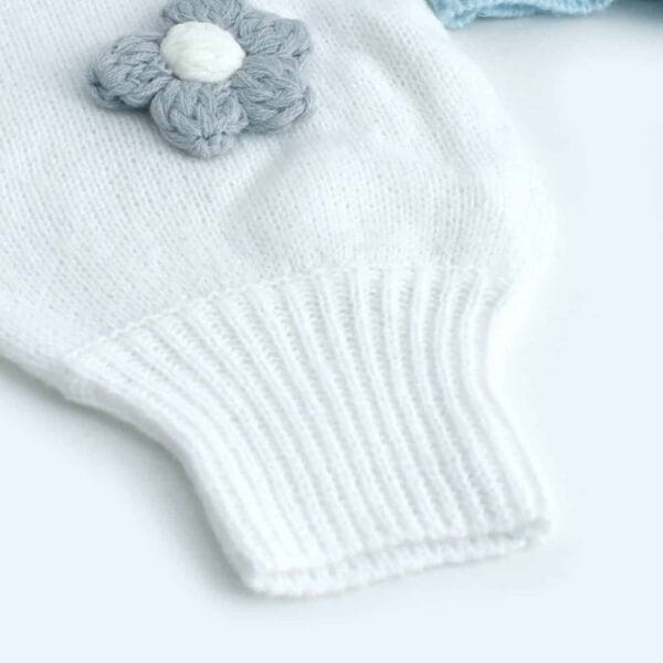 Eleve o seu guarda-roupa com esta encantadora casaco de malha floral para mulherque combina estilo e conforto na perfeição. Confeccionada em tecido macio tecido de malha, este casaco de malha floral para mulher apresenta uma deliciosa combinação de azul claro e branco tons com intrincados apliques florais em crochéO seu design é perfeito para dar um toque de elegância a qualquer conjunto. Perfeito como um camisola leve ou uma camada da moda, este casaco de croché é ideal para passeios casuais, moda primaveril ou looks de inverno acolhedores.